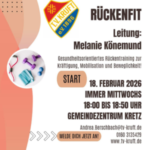 Rückenfit – tu deinem Rücken etwas Gutes! 💪🧘♀️ Gesundheitsorientiertes Rückentraining zur Kräftigung, Mobilisation und Beweglichkeit. Start: 18. Februar 2026 Wann: immer mittwochs, 18:00–18:50 Uhr Wo: